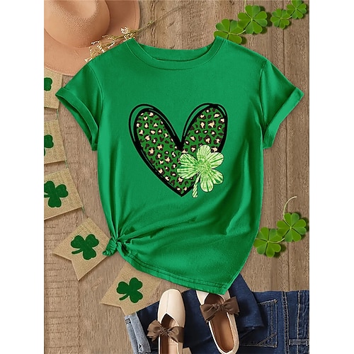 Maglietta Donna St. Patrick's Day Fortunata T-shirt 100% Cotone Cuore Stampa Shamrock Moda Festiva Basic Maniche Corte Collo Dritto Verde Erba Estate