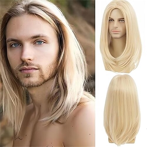 parrucca lunga marrone per uomo con capelli lisci, parrucche sintetiche resistenti al calore per costumi da festa quotidiana