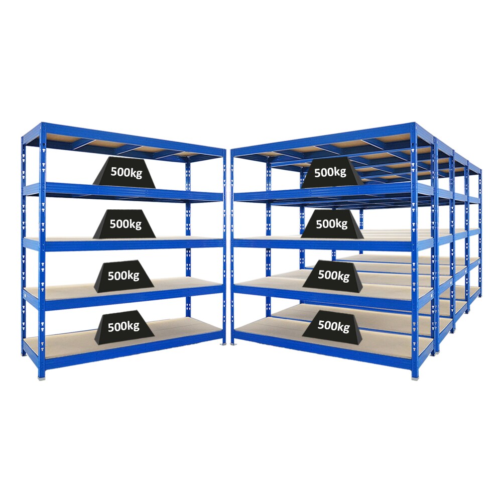 Proregal Mega Deal | 5x Profi Schwerlastregal Rhino | HxBxT 200x200x60cm | 5 Spanplatten-Ebenen 8mm | Fachlast 500kg | Blau