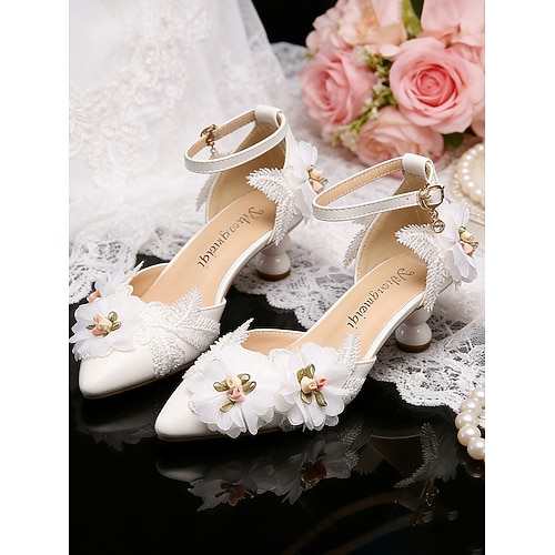 décolleté bianche da donna con punta a punta e tacco basso e cinturino alla caviglia – scarpe da sposa, da damigella d'onore e da cerimonia