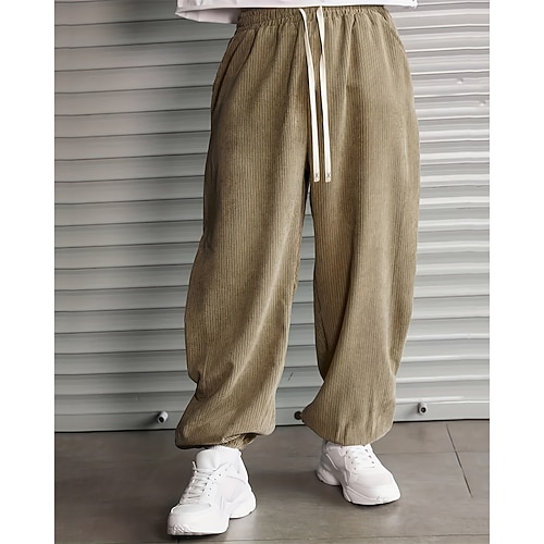 Herren Baggy-Jogginghose Jogginghose Hose Cordhose Kordelzug Tasche Elastischer Bund Einfach Komfort Sport im Freien Täglich Mode Lässig Schwarz Khaki Mikroelastisch