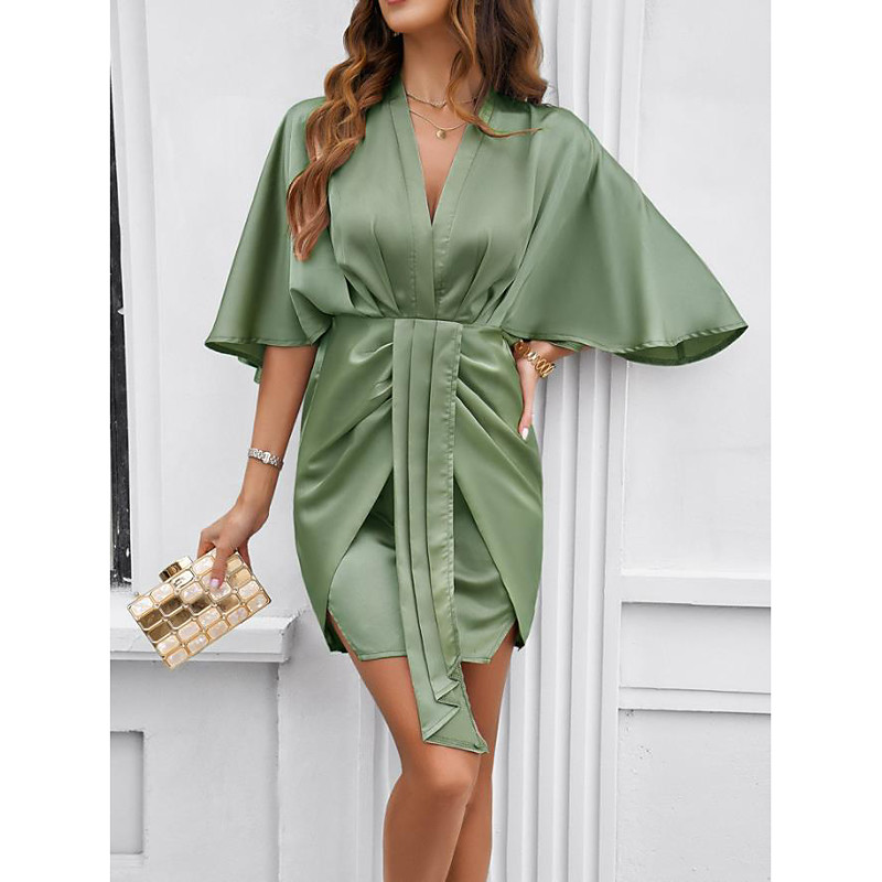 Women's Mini Dress Black Dress Cocktail Dress Formal Dresses Plain Dress Vintage Casual Street Date Loose Fit Plain Half Sleeve V Neck Black White Green Summer Spring