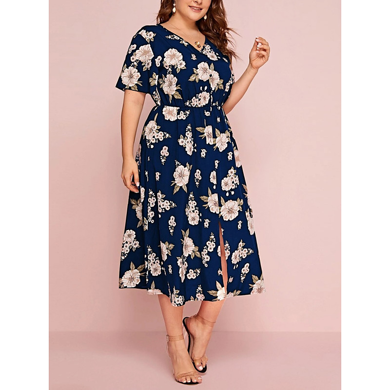 Women's Plus Size Casual Dress Floral V Neck Short Sleeve Summer Spring Elegant Fashion Modern Casual Midi Dress Daily Holiday Dress