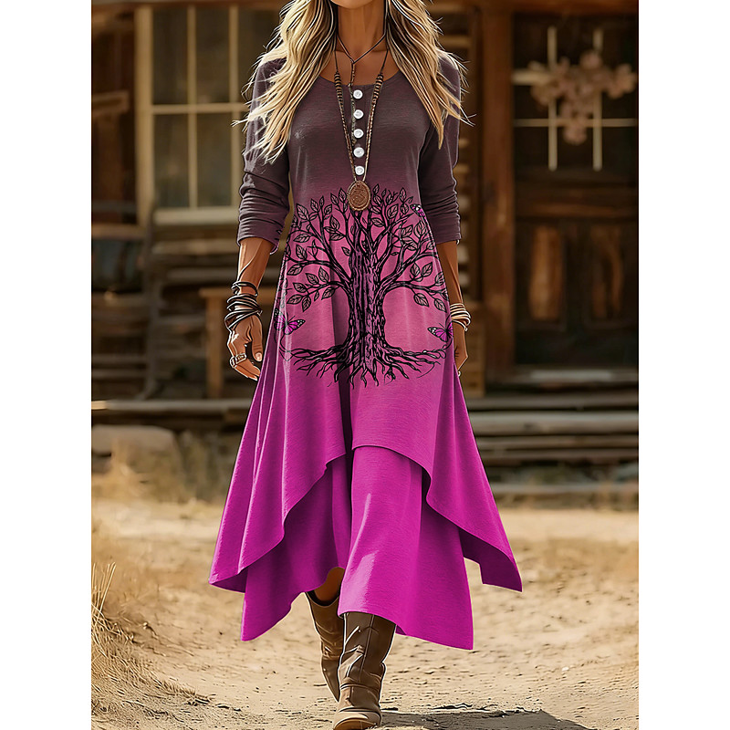 Women's Midi Dress Shift Dress Casual Daily Holiday Regular Fit Graphic Geometric Long Sleeve Crew Neck Blue Royal Blue Purple Green Spring Winter