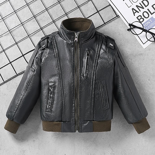 Kinder Jungen Schwarze Lederjacke Jacke Oberbekleidung Einfach Langarm Reißverschluss WASSERDICHT Winddicht Mantel Täglich Mode Lässig Rote Grün Frühling Herbst 4-12 Jahre