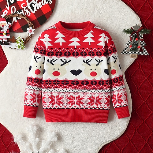 Kinder Unisex Weihnachtspullover Grafik Langarm warm halten Outdoor Mode Rote Herbst Kleidung 4-12 Jahre