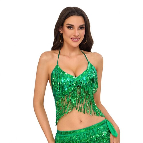 Abbigliamento da danza Samba per il Carnevale di Rio - Top da performance per danza del ventre e danza al palo - Reggiseno con paillettes per club notturni con frange - Costume per performance al
