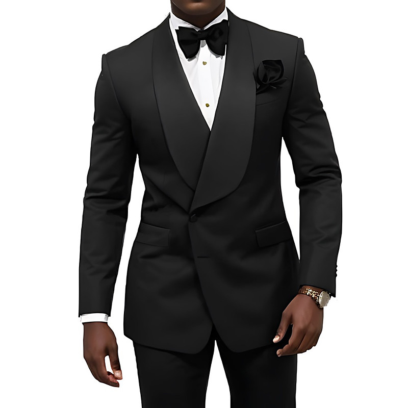 Men's Prom Wedding Party Suits Black Formal Solid Colored Standard Fit 2 Piece Single Breasted Two-buttons