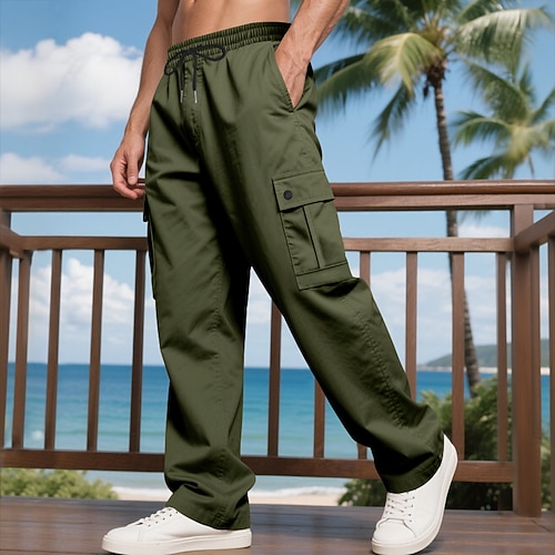 Per uomo Pantaloni Cargo Pantaloni Pantaloni Larghi Coulisse Elastico in vita Multi-tasche Semplice Antivento Comodità Quotidiano All'aperto Ferie Streetwear Elegante Nero Verde militare