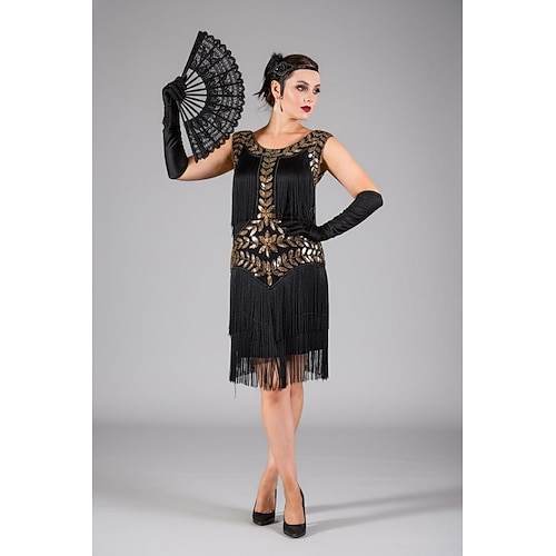 Anni Ruggenti Anni 1920 Lunghezza al ginocchio Abito Flapper Il grande Gatsby Ragazza Flapper Paillettes Frange Scollo a V Costume Per donna Natale Carnevale Festa serale Mascherata Festa a tema retrò