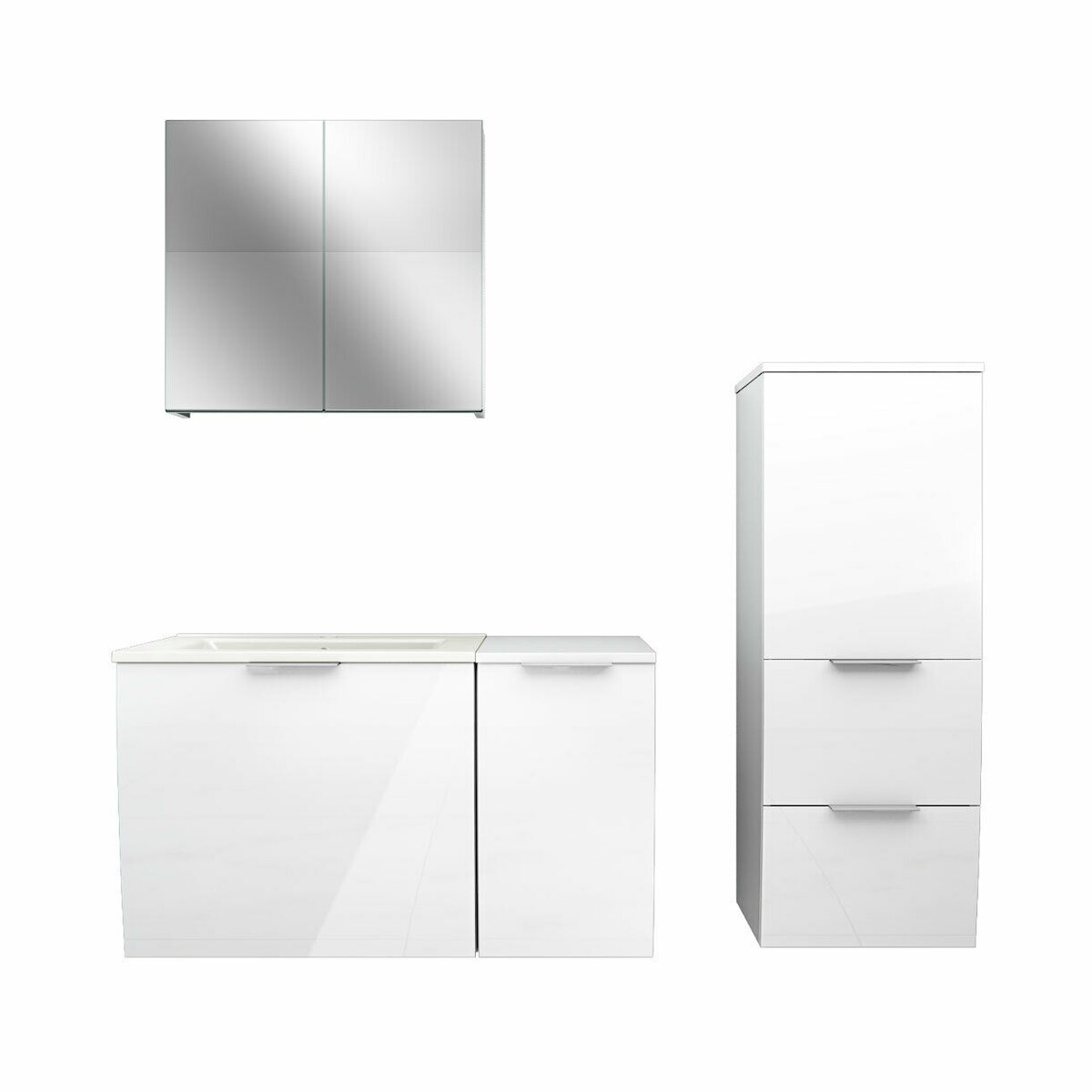 AcquaVapore Badmöbel Set Gently 1 V2 R Weiß MDF Waschtisch 90cm mit 5W LED-Strahler / Energiebox