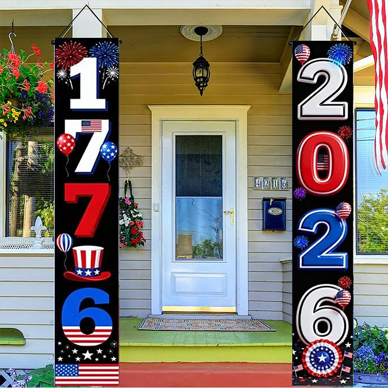 250th Anniversary USA Patriotic Couplet Banner 250 Years of Freedom Celebration American Flag Door Decoration Red White and Blue Party Decor Semiquincentennial Celebration