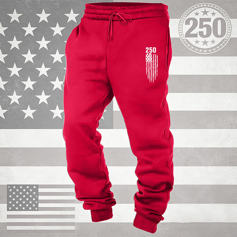 Men's Sweatpants Joggers Trousers Drawstring Pocket Elastic Waist National Flag Comfort Breathable Daily Outdoor America's 250th Anniversary Vacation Fashion Blue Black Micro-elastic