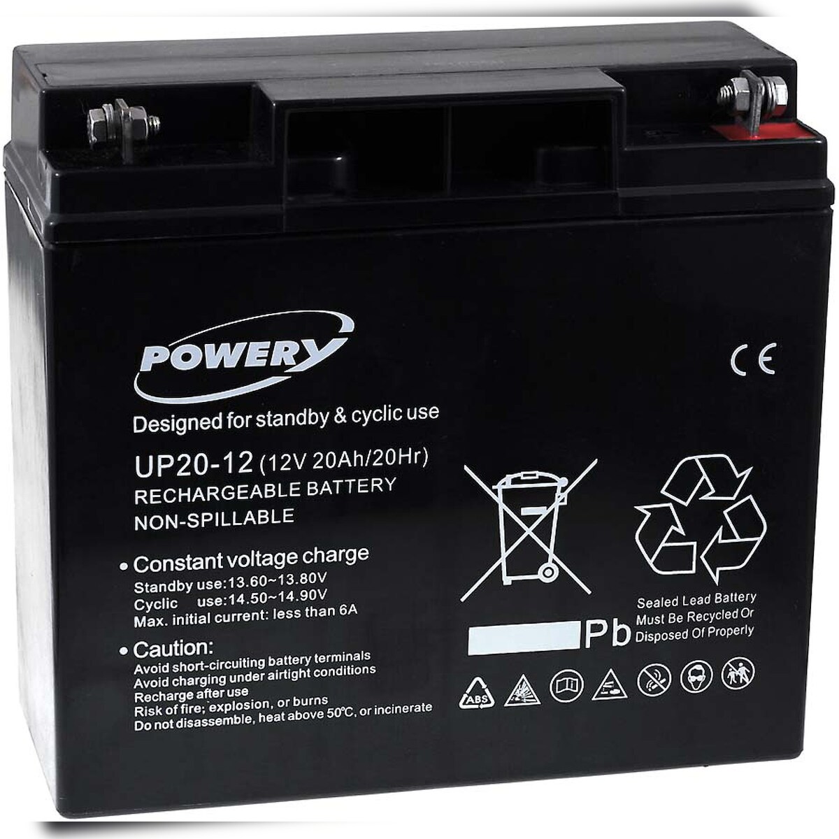 Powery Blei-Gel Akku UP20-12 12V 20Ah (ersetzt auch 18Ah)