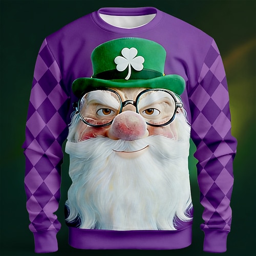 Giorno di San Patrizio Per uomo Trifoglio Irlanda folletto Felpa Moda Esagerato 3D Girocollo Casa All'aperto Club Feste Viola Arancione Verde Girocollo Stampa 3D Inverno Primavera Autunno