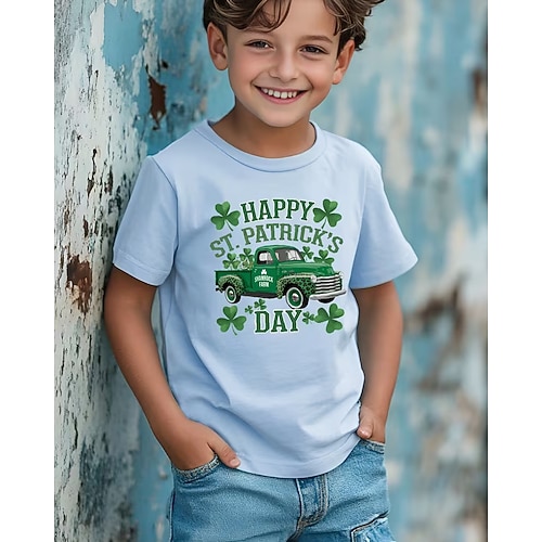 San Patrizio Unisex Ragazzi 3D Grafico Auto Quadrifoglio Maglietta Manica Corta Stampa 3D Estate Primavera Sport Moda Streetwear Bambini 4-12 Anni Girocollo Casuale Quotidiano All'aperto Vestibilit