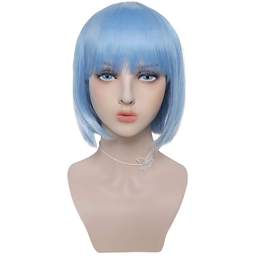 weiße Damenperücken hitzebeständige Kunsthaarperücke gerader Stufenhaarschnitt Perücke kurz cremeweiß hitzebeständiges Kunsthaar geruchsneutral normal weiß hitzebeständig 4inch