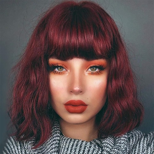 Kunsthaarperücke gewellt Pixie-Schnitt Perücke kurz weinrot Kunsthaar Damen Party Mode Burgund Perücken
