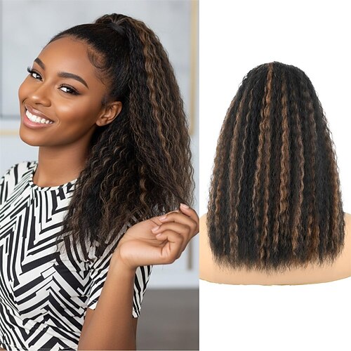 Haarverlängerung mit Kordelzug für schwarze Frauen, 40 cm (16 Zoll), natürlich gewellter, glatter Yaki-Pferdeschwanz aus Kunsthaar, synthetischer Fake-Pferdeschwanz für den täglichen Gebrauch (1b)