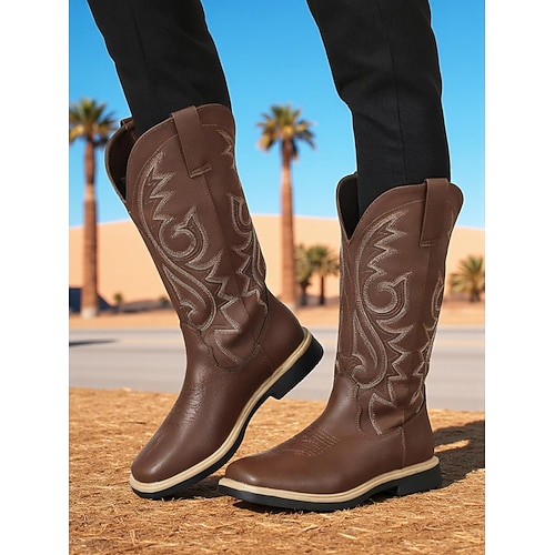 stivali da lavoro western ricamati marroni da donna – stivali da cowboy con punta quadrata per abbigliamento da ranch, escursioni nel deserto e lavori agricoli