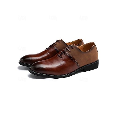 scarpe eleganti da uomo in similpelle marrone - stringate, design classico con vestibilità comoda per abbigliamento da lavoro, formale e da ufficio e matrimoni