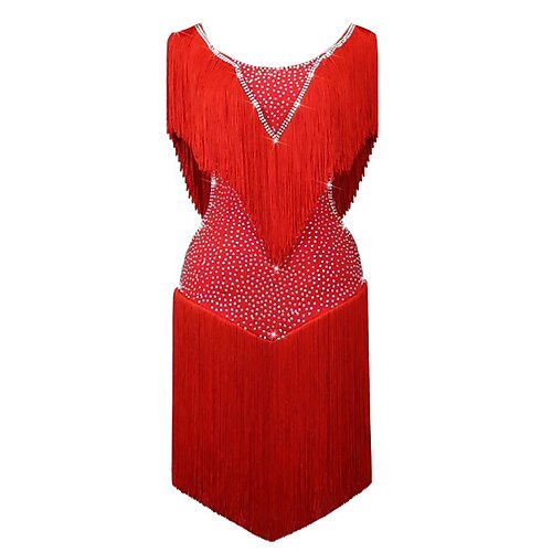 vestito da ballo latino per donna, con frange e strass lucidi, abito da festa flapper, costume da ballo da sala