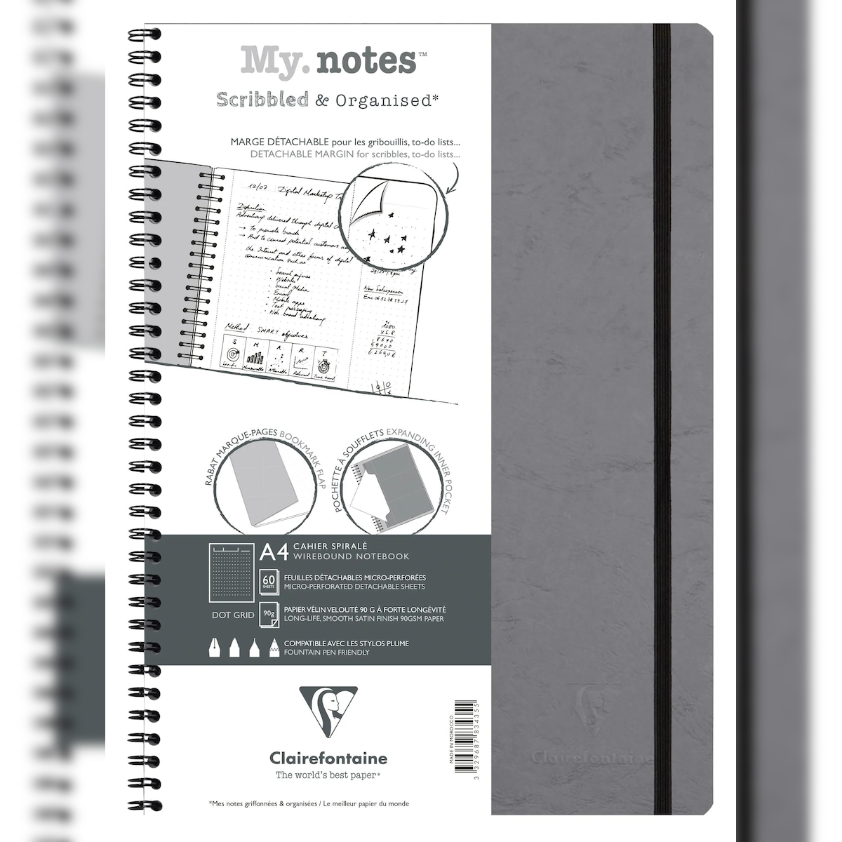 Clairefontaine 5x My.Notes Age Bag, Spiralheft A4, 60 Blatt 90g, DOT mit Kopfleiste, abtrennbar, mikroperforiert - Grau 783435C