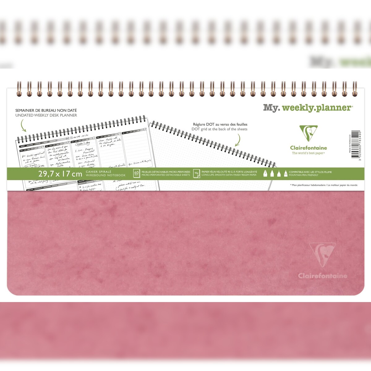 Clairefontaine 5x Age Bag, My.weekly.planner, Spiralbuch 29,7x17 cm, 120 abtrennbare Seiten (60 Bl) 90g, Rückseite punktkariert - Antikrosa 783496C