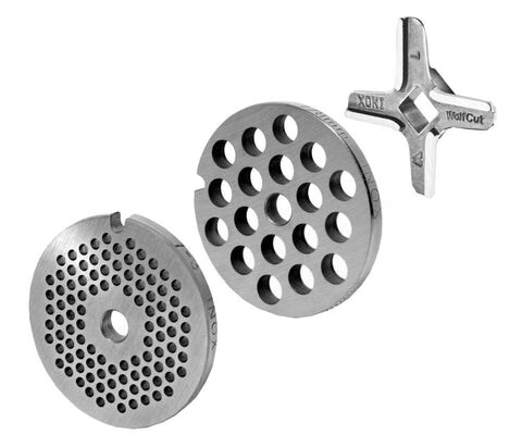 WOLFCUT Fleischwolfscheibensatz 4 mm + 8 mm + 13 mm Bohrung kompatibel mit allen gängigen Fleischwolf Marken Größe 5