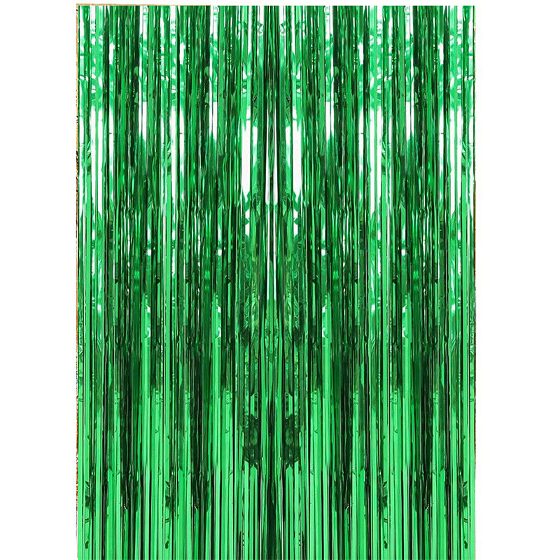Green Ribbon Jungle Party Decorations Aluminum Foil Tassel Backdrop Curtains Photo Booth Backdrop Perfect for Birthday and St. Patrick's Day Party Decorations