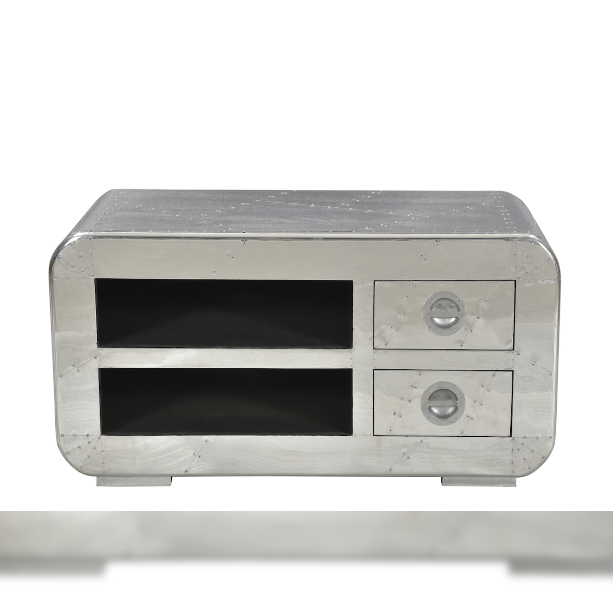 SIT Möbel Lowboard | 2 Schubladen, 2 offene Fächer | Mangoholz + MDF mit Alu beschlagen | B 100 x T 45 x H 50 cm | 01715-21 | Serie AIRMAN