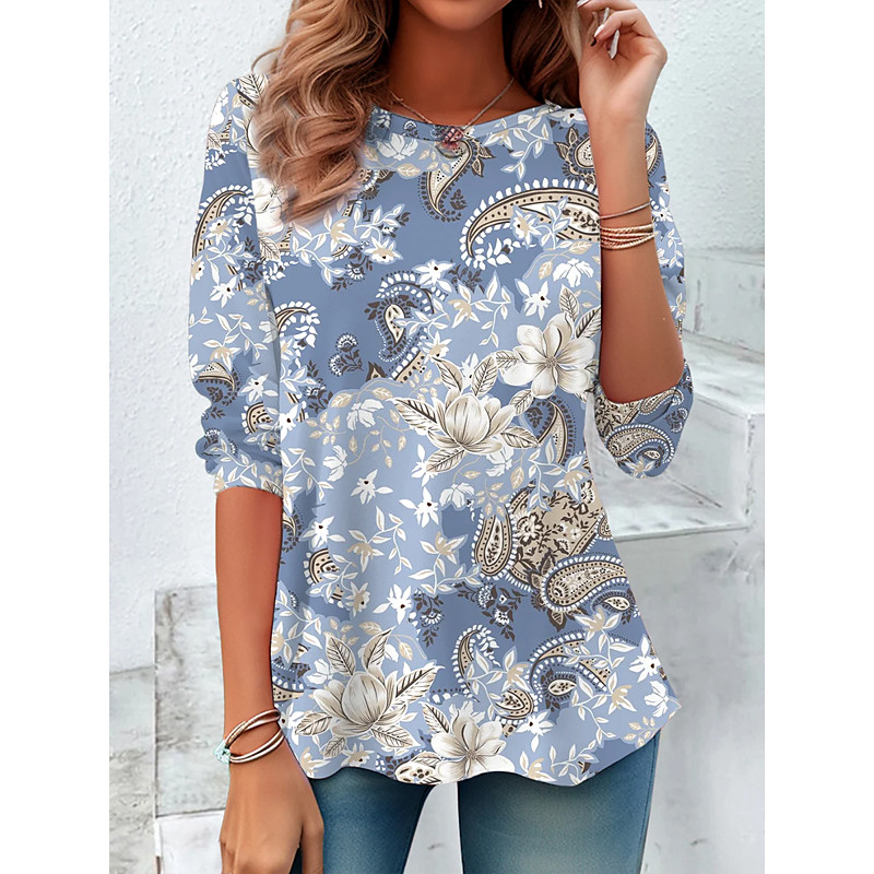 Women's Blouse Floral Graphic Paisley Vintage Tropical Stylish Long Sleeve Crew Neck Regular Tops Daily Print Dusty Blue Spring Fall Winter