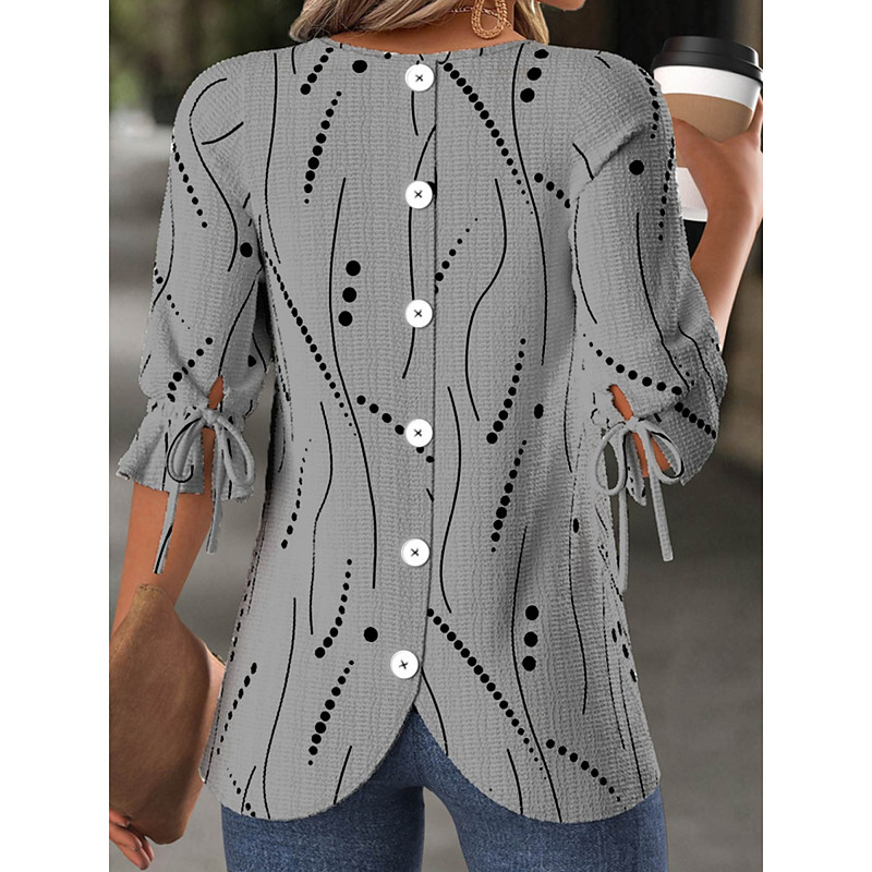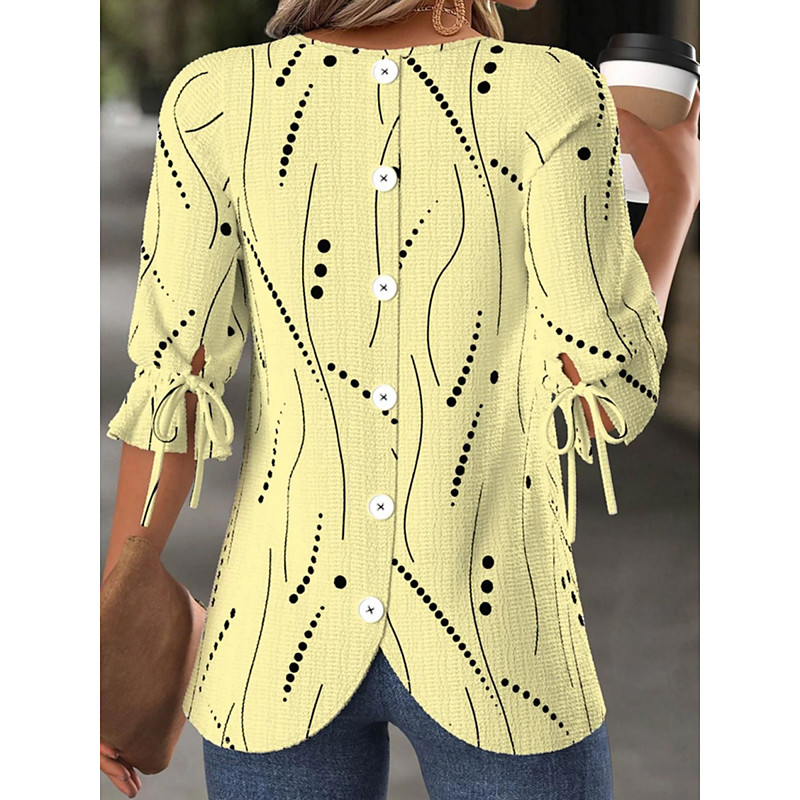 Women's Blouse Geometric Stylish Casual Half Sleeve Crew Neck Regular Tops Daily Print Blue White Yellow Pink Purple Spring Fall