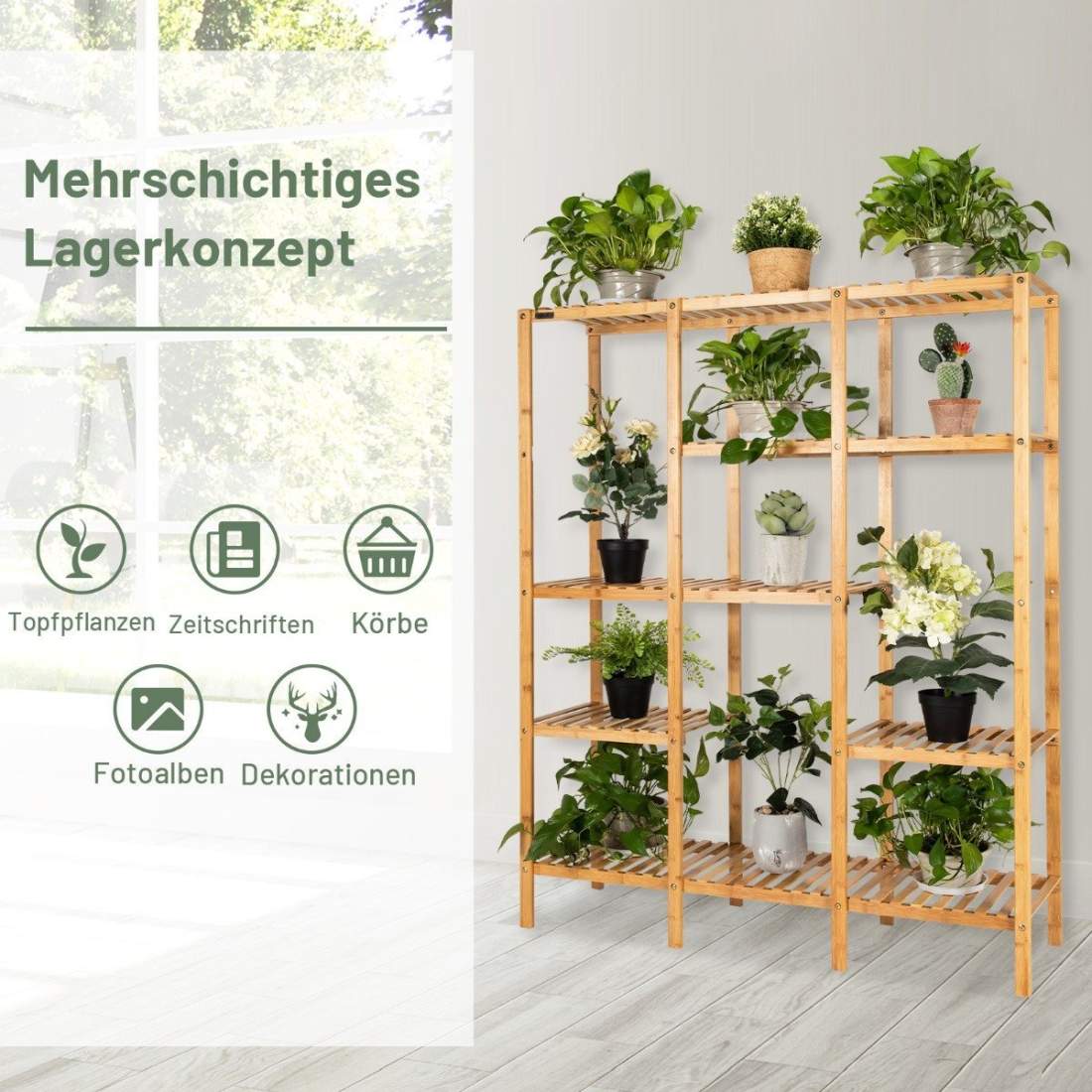Plantehylde bambus stående hylde med 5 niveauer blomstertrapper plantestativ med hængende ramme 114 x 31 x 141 cm natur