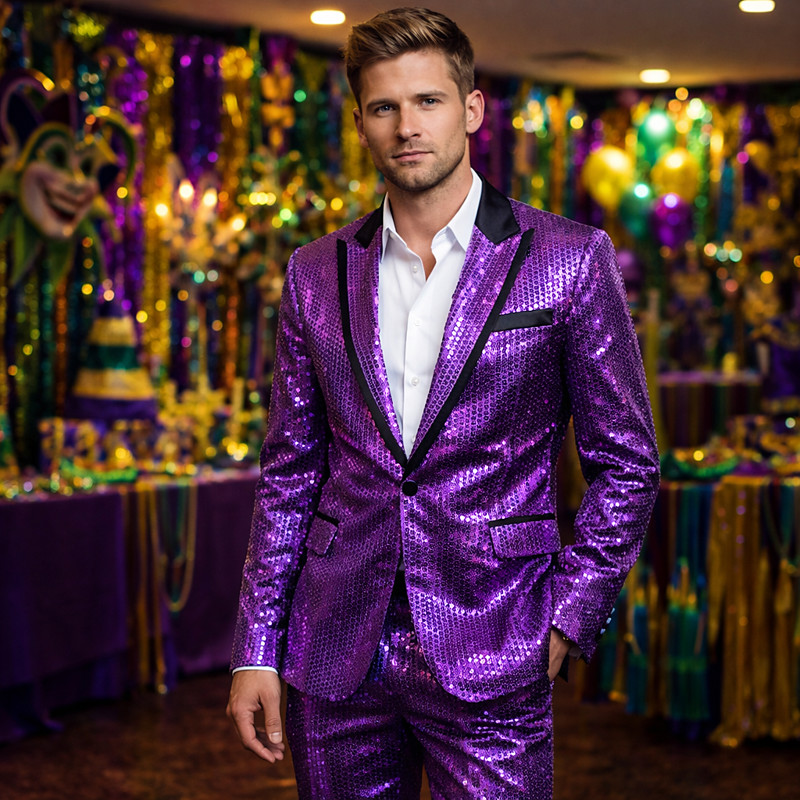 Mardi Gras 2026 Retro Vintage 1980s Tuxedo Suits Blazers Disco Sequins Slim Fit Fancy Dress Men's Carnival Costume Christmas Carnival New Year Club Party Pride Parade Adults' Coat