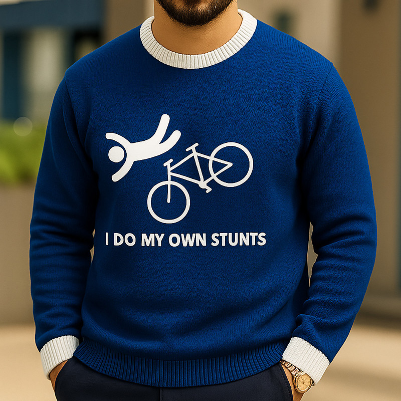 Men's Funny I Do My Own Stunts 3D Cartoon Pullover Sweater Jumper Knitwear Crewneck Casual Vacation Home Street 3D Print Knitting Graphic Long Sleeve Spring Fall Winter Black Red Blue