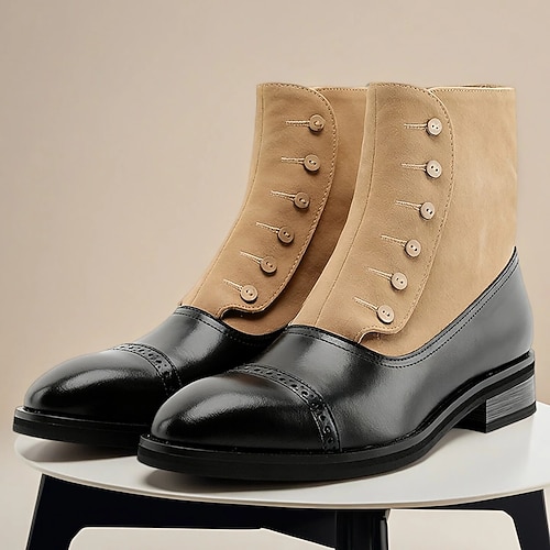 stivaletti da uomo in similpelle nera e marrone chiaro: eleganti dettagli con bottoni, design classico con vestibilità comoda, perfetti per occasioni formali e casual eleganti