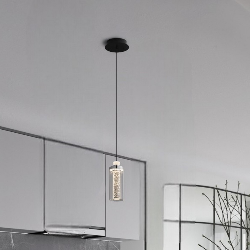 Nova Luce Lune - lampe suspendue - Ø 14 x 210 cm - 9W dimmable LED inclus - noir sable et chrome