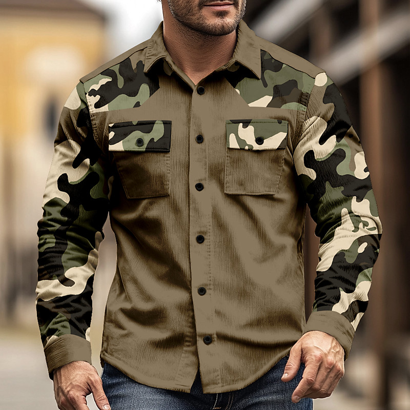 Men's Camo Camouflage Corduroy Shirt Western Shirt Shirt Jacket Long Sleeve Vintage Retro Outdoor WorkWear Fall Winter Turndown 3D Print Cowboy Shirts Jacket with Flap Pockets Taupe Gray Dark Green