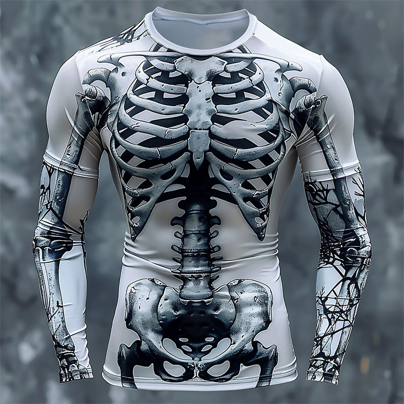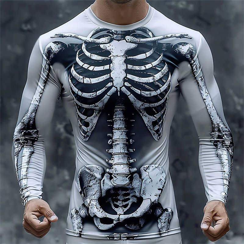 Men's Graphic Skeleton T Shirt Long Sleeve T shirt 3D Print Crew Neck Shirt Designer Casual Subculture Sports Outdoor Holiday Going out Light Grey Dark Gray Gray Spring Fall Clothing Apparel S M L