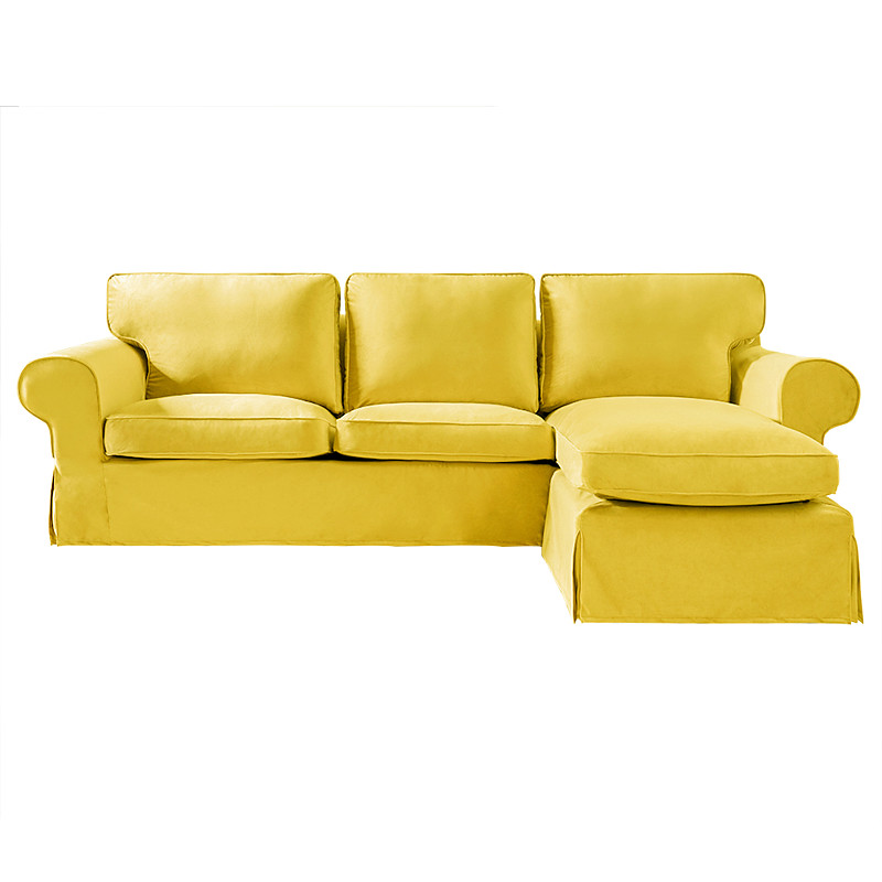 EKTORP 3-Seater Sofa with Chaise Longue Cover, Solid Color Quilted Velvet Slipcover, Durable Non-Slip Protector for Living Room