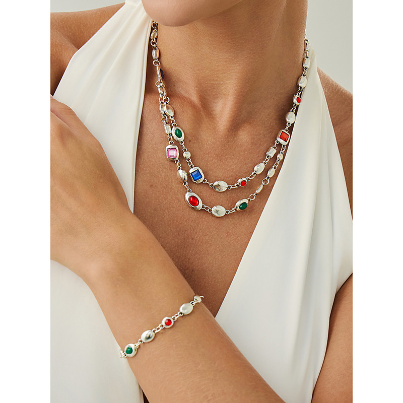 Women's Multicolor Gemstone Necklace and Bracelet Set - Elegant Gold-Tone Layered Jewelry for Fashion Outfits, Parties and Everyday Chic Style