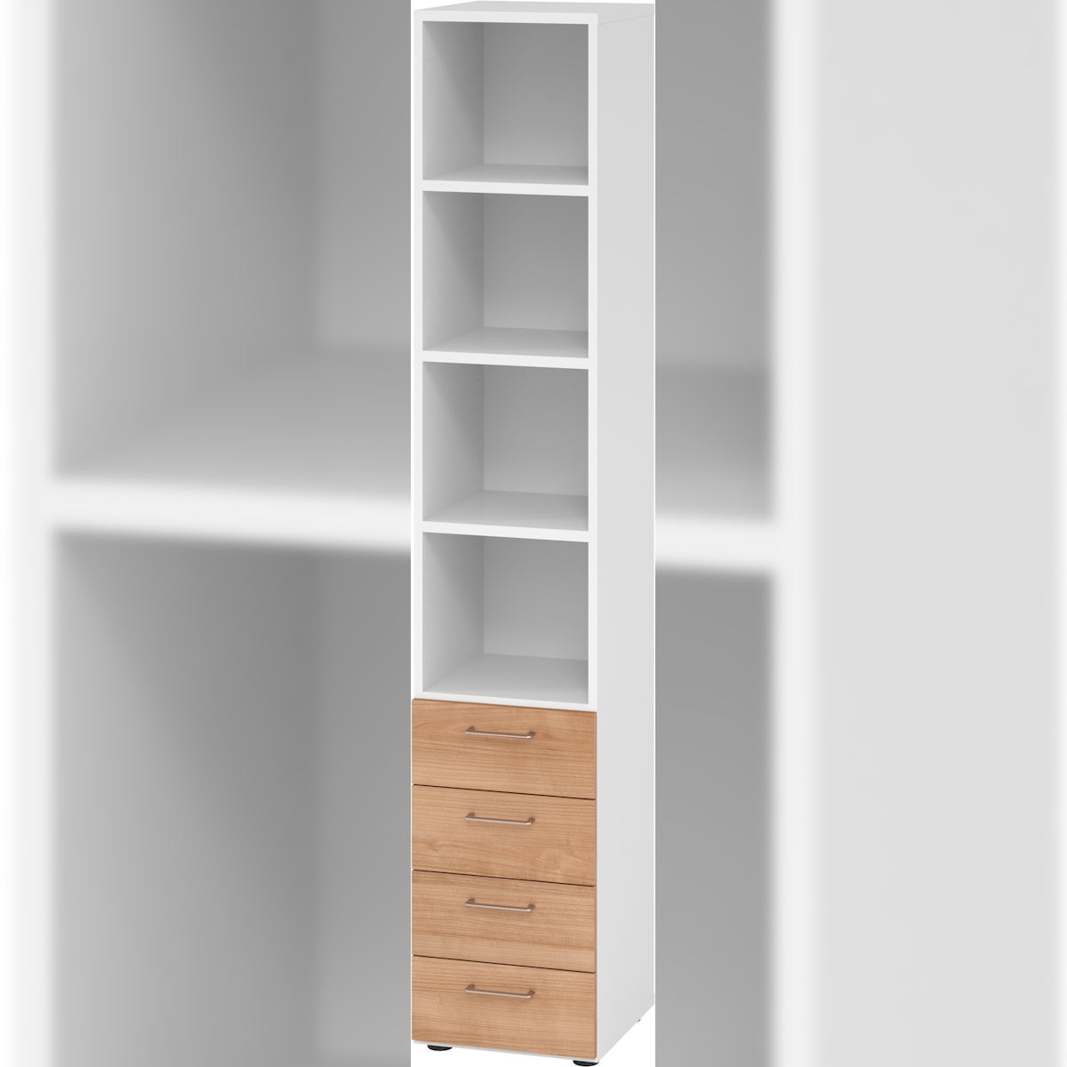 bümö smart Schubladenschrank, Büroschrank in Weiß/Nussbaum mit 4 Schüben & 4 Regalfächern - Bürocontainer aus Holz, Container mit Metallgriffen &