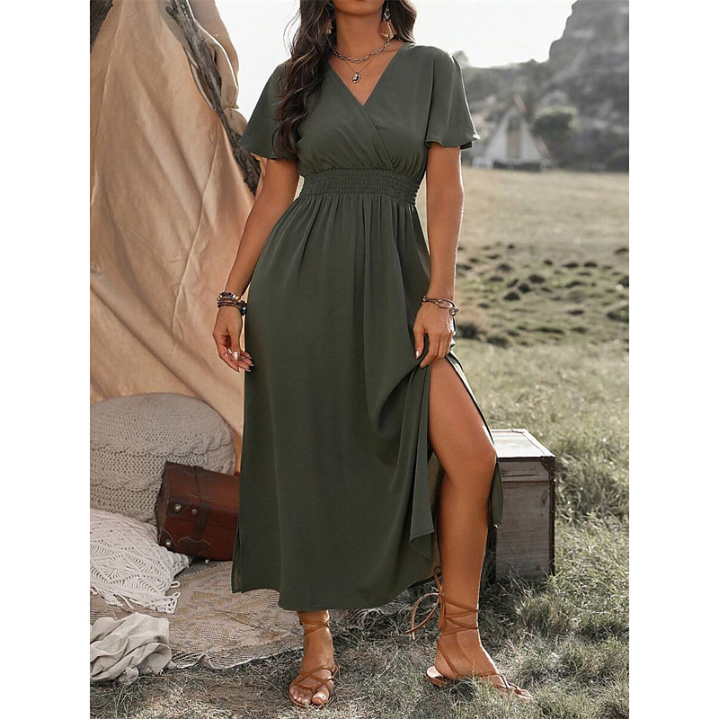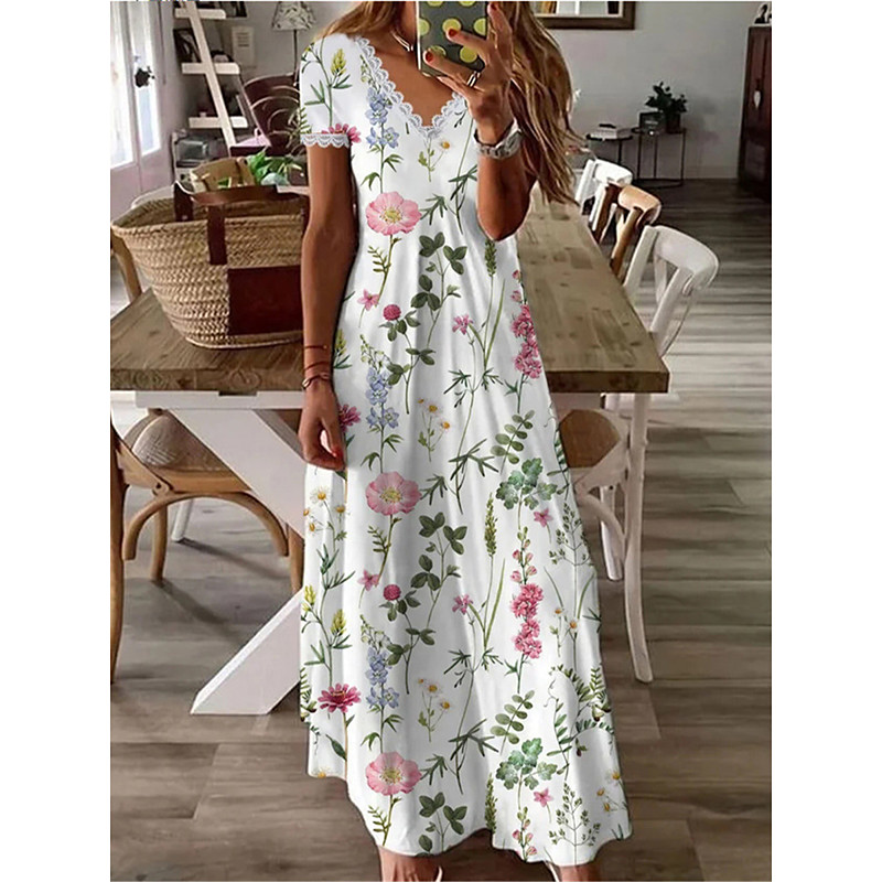 Women's Casual Dress Summer Dress Stylish Casual Vacation Daily Date Regular Fit Short Sleeve V Neck White Summer