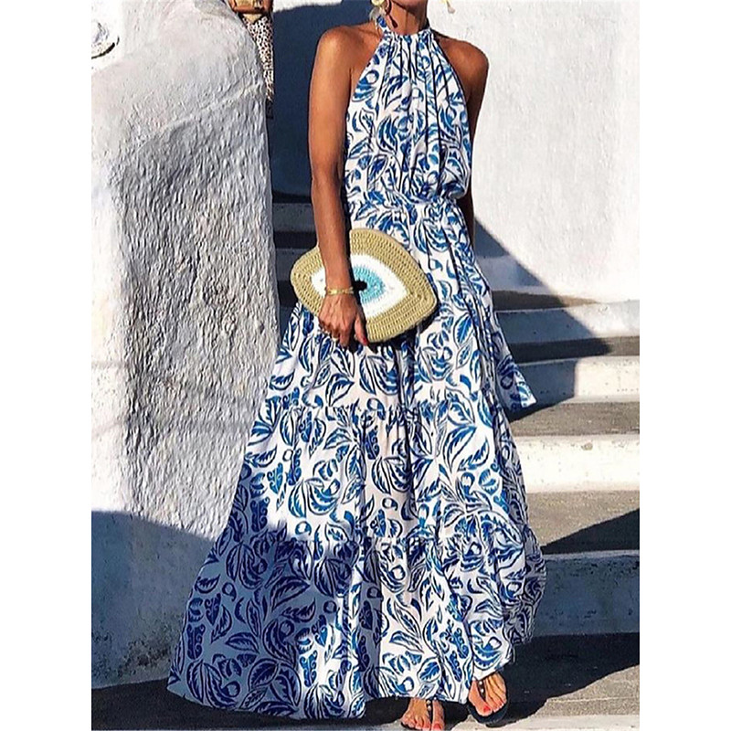 Women's Casual Dress Swing Dress Floral Print Halter Neck Long Dress Maxi Dress Stylish Casual Daily Date Sleeveless Summer