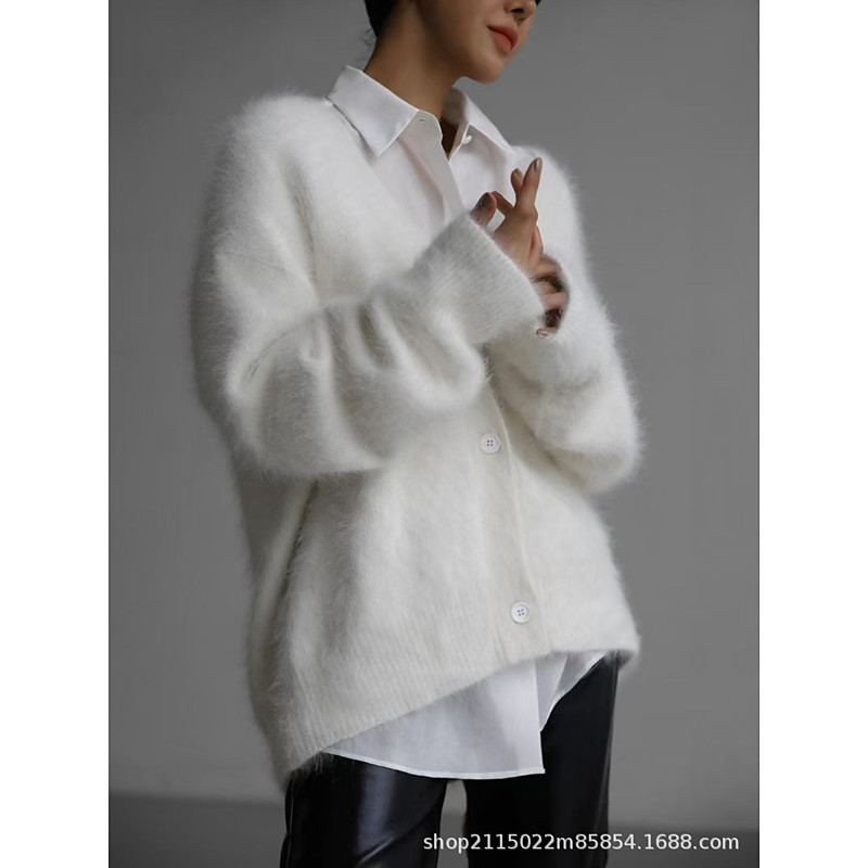 Women's Cardigan Elegant Cute Casual Solid Color V Neck Buttons Long Sleeve Regular Tops Knit Daily Date Weekend White Pink Fall