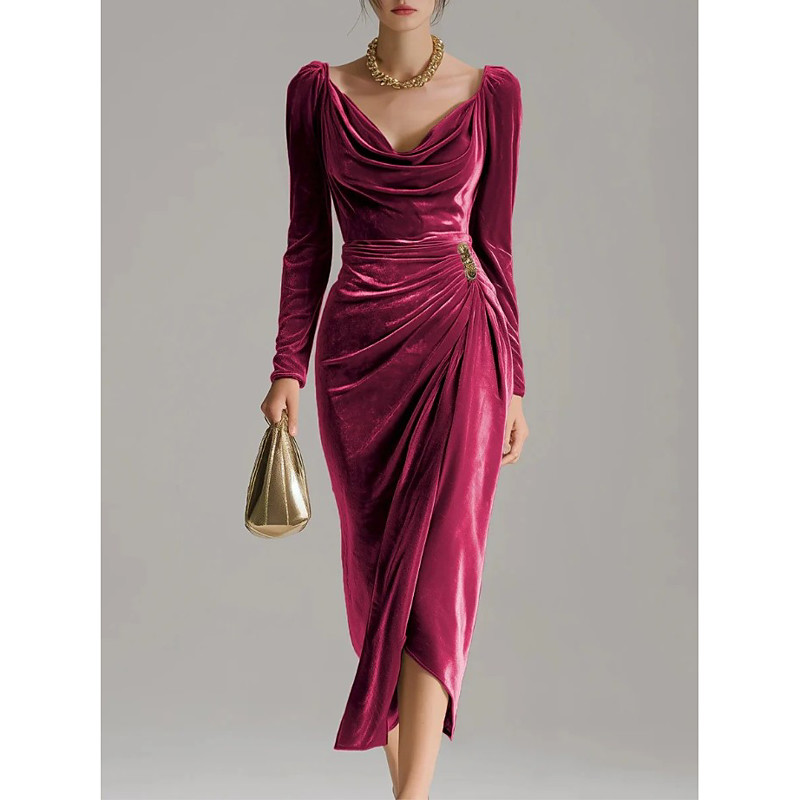Women's Wine Brown Green Fall Winter Midi Dress Sheath Dress Birthday Formal Semi Formal Formal Wedding Date Regular Fit V Neck