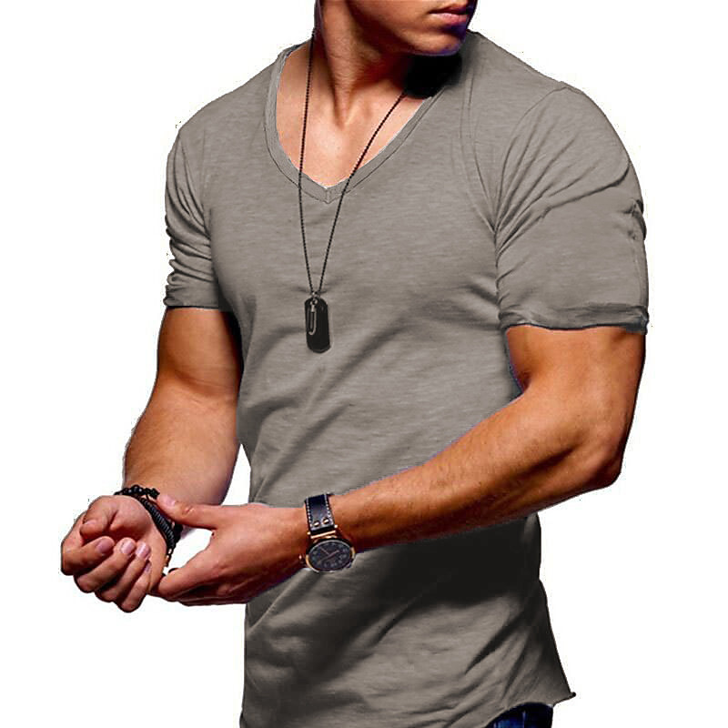 Men's T Shirt Tee V Neck Basic Casual Muscle Short Sleeve Dark Yellow Dark Brown Navy Wine Red Kong Lan Black Solid Color V Neck Daily Zipper Clothing Clothes Polyester 1pc Basic Casual Muscle