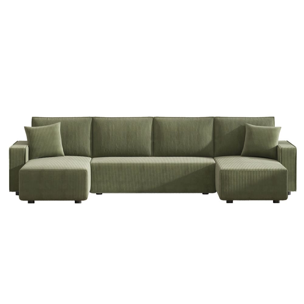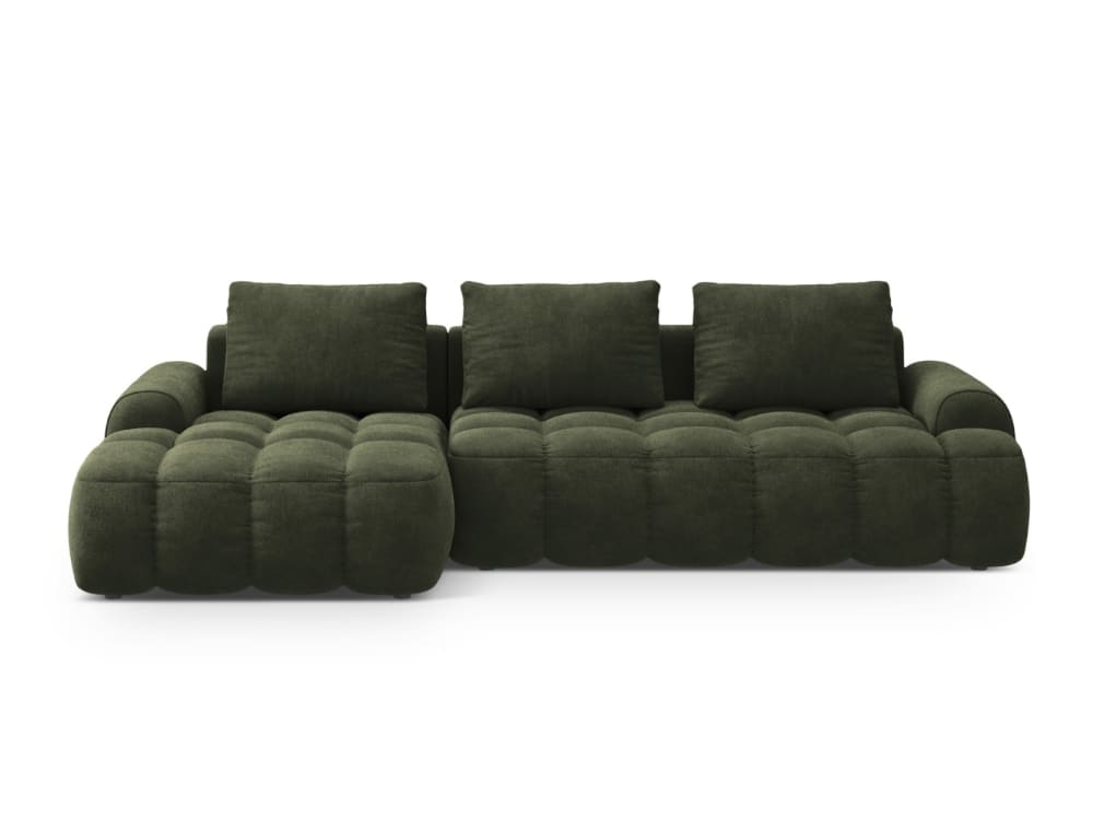Divano convertibile angolare con contenitore 3 posti in velluto verde