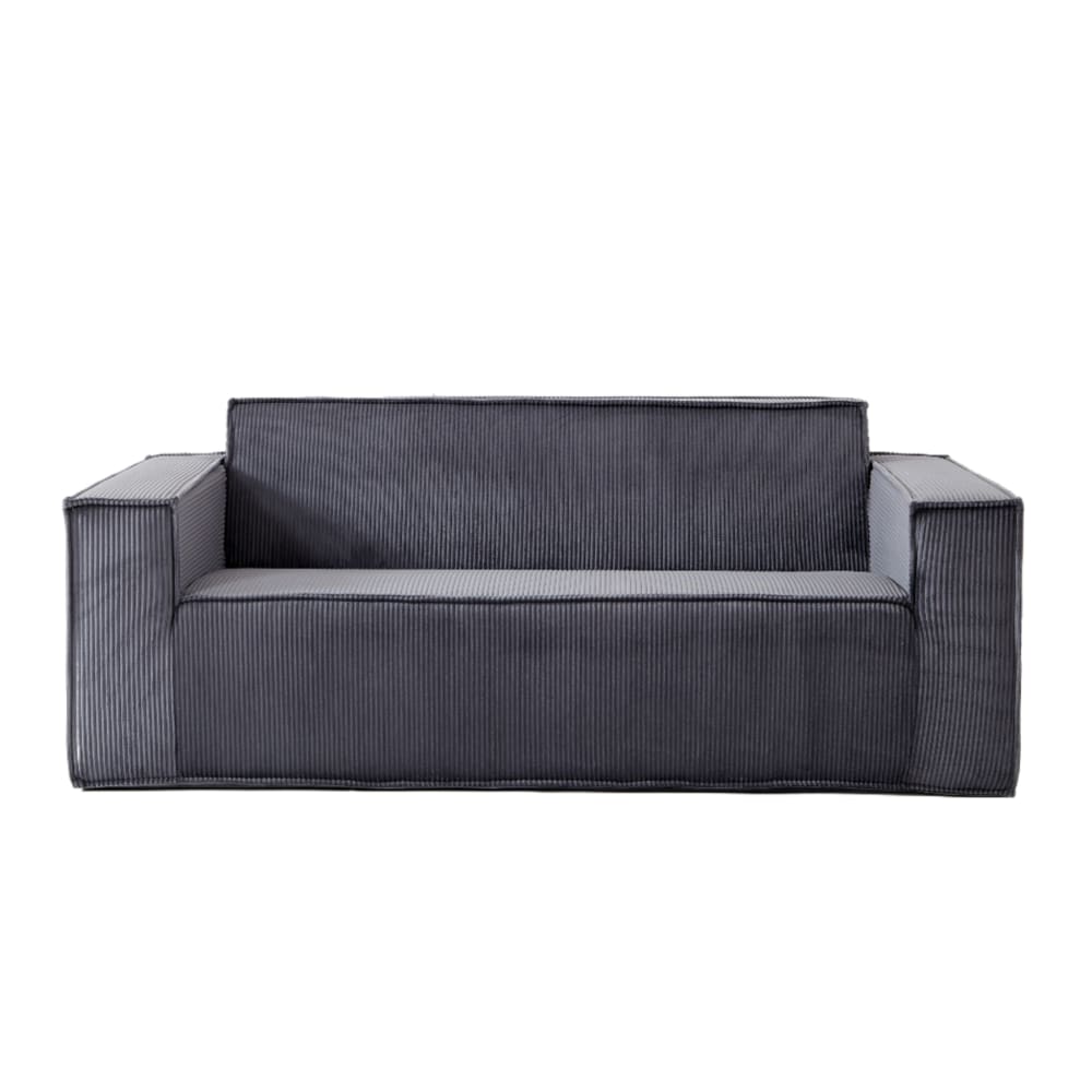 Divano a due posti in velluto a coste grigio, seduta profonda